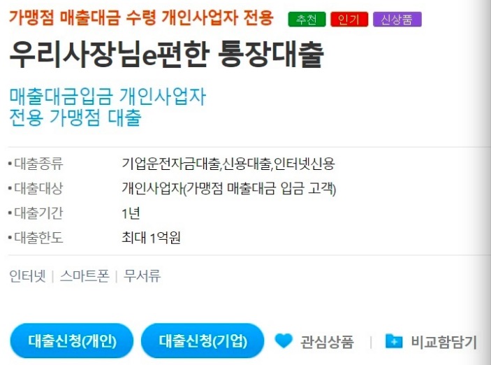 - 우리은행 우리 사장님 e 편한 통장 대출