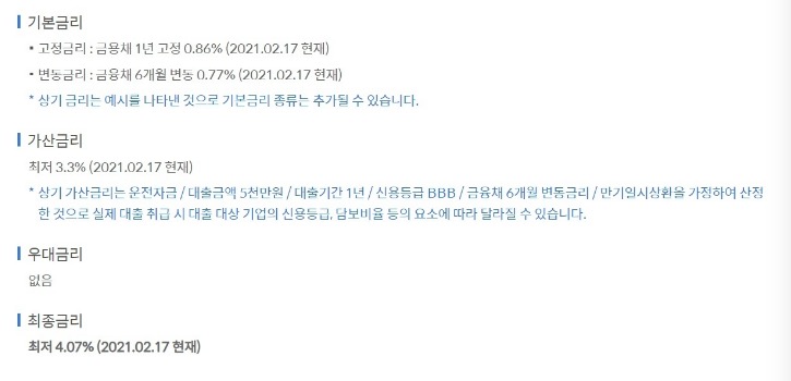 - 대출금리 및 유의사항