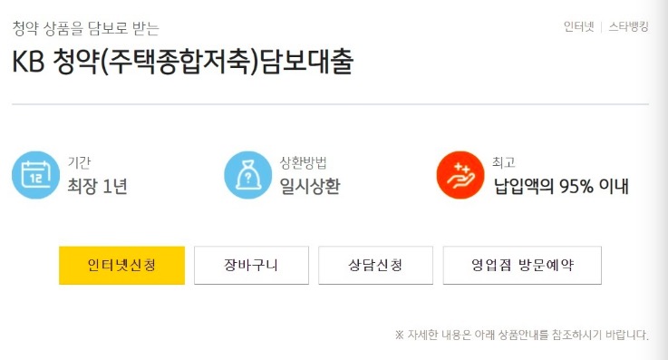 국민은행 청약저축(주택청약종합저축) 담보대출 : 1년 이내