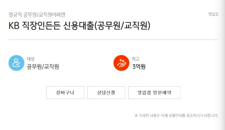 •      KB직장인든든 신용대출 조건(직장인, 공무원, 교직원, 군인)