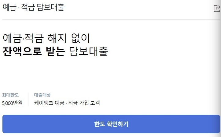 - 케이 뱅크 예금 및 적금 담보대출 조건