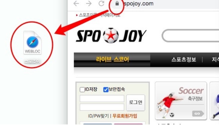 스포조이 사이트에서 좌측 상단 열쇠모양을 클릭한 상태에서 바탕화면으로 끌어옵니다. 다 되었습니다. 스포조이 바로가기 가장쉬는 방법이였습니다.