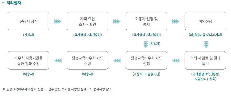 학습자가 본인의 학습 요구에 따라 자율적으로 학습 활동을 결정하고 참여할 수 있도록 정부가 제공하는 평생교육 이용권입니다.