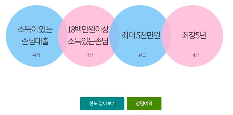 한도는 최대 5천만원까지 입니다. 고객의 소득 수준, 사업영위기간, 담보현황, 조건 등에 따라 한도는 차등 부여됩니다.