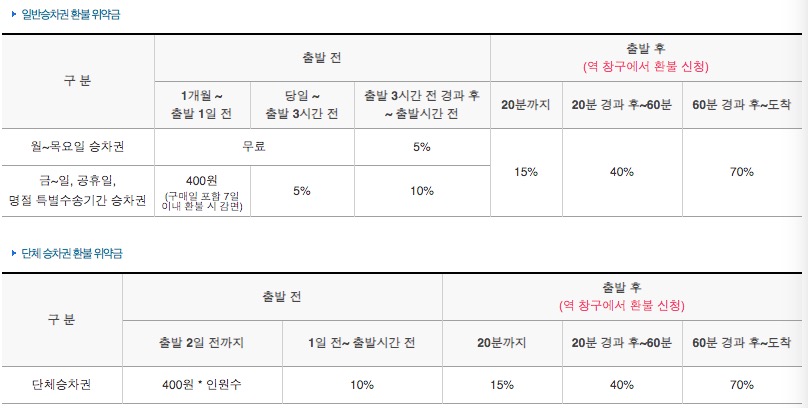 기차표를 예매했는데 어쩔수 없는 상황에 승차권을 반환해야 할 상황이 오게 됩니다. 코레일톡 승차권 반환 시 환불 위약금이 붙는데요. 상황마다 금액이 다릅니다.