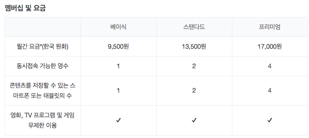 - 넷플릭스 멤버쉽 요금제 비교